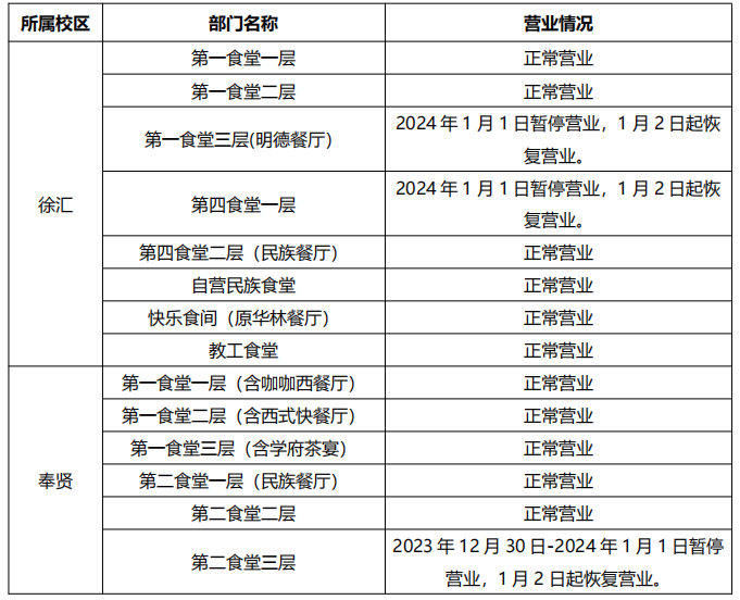 1.两校区商业街商铺正常营业;