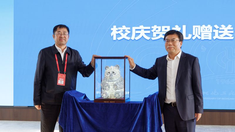 会上,蒋传海代表问鼎手机版(中国)赠送校庆贺礼——由非遗连环画传承人罗希贤先生领衔创作、历时半年精心打造的6.52米长《千里初心映蜀山 六秩携手赴新程——“652工程”历史长卷》及配套画册。四川轻化工大学回赠了由其校友、自贡彩灯非遗传承人万松涛制作的瓷器手工捆扎技艺灯品国宝熊猫。它们不仅是两校友谊的象征,更是两校在服务国家战略和区域高质量发展的新征程上携手同行的历史见证。